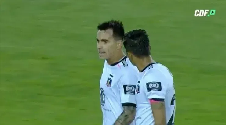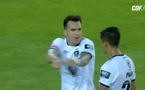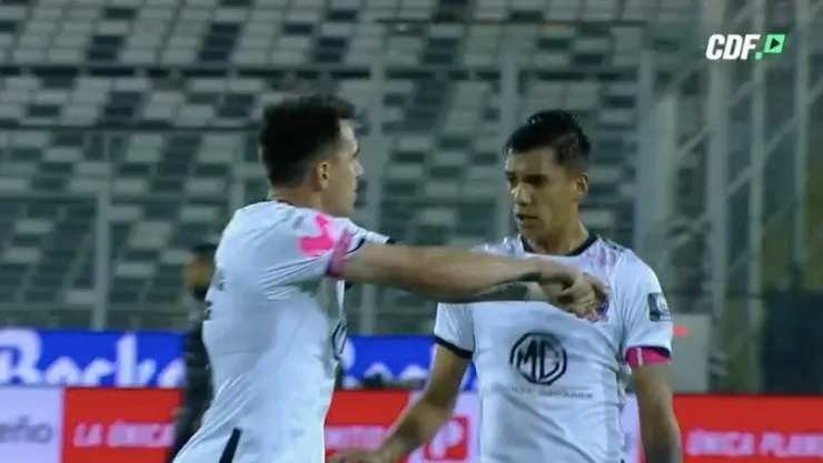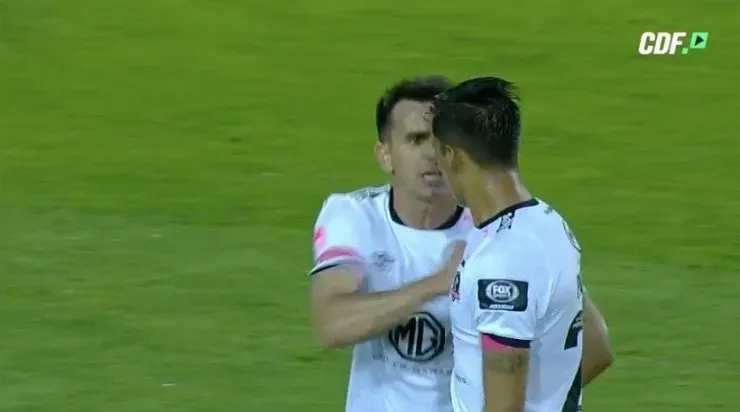 Una vez finalizado el primer tiempo, el goleador de la jornada quiso ir a abrazar al argentino, pero el zurdo no tuvo la mejor reacción y cuando todo parecía calentarse, tuvo que intervenir Felipe Campos para separarlos.
