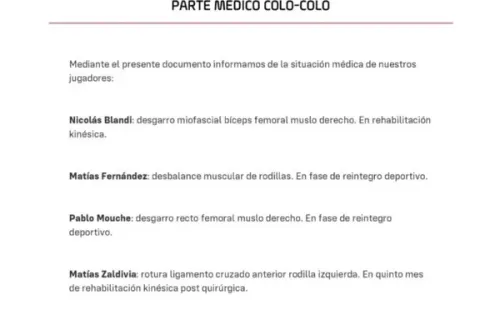 Revisa el parte médico entregado por el cuerpo médico de Colo Colo:
