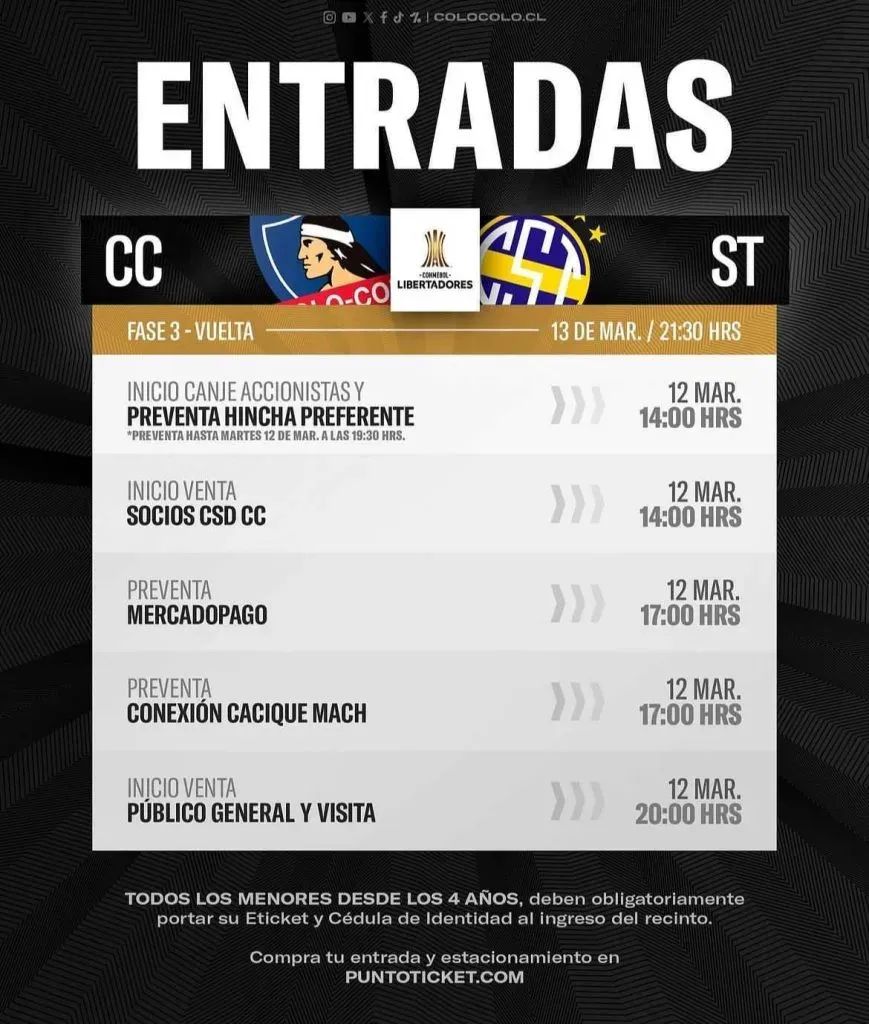Revisa los horarios de venta de entradas para el duelo entre Colo Colo y Sportivo Trinidense: