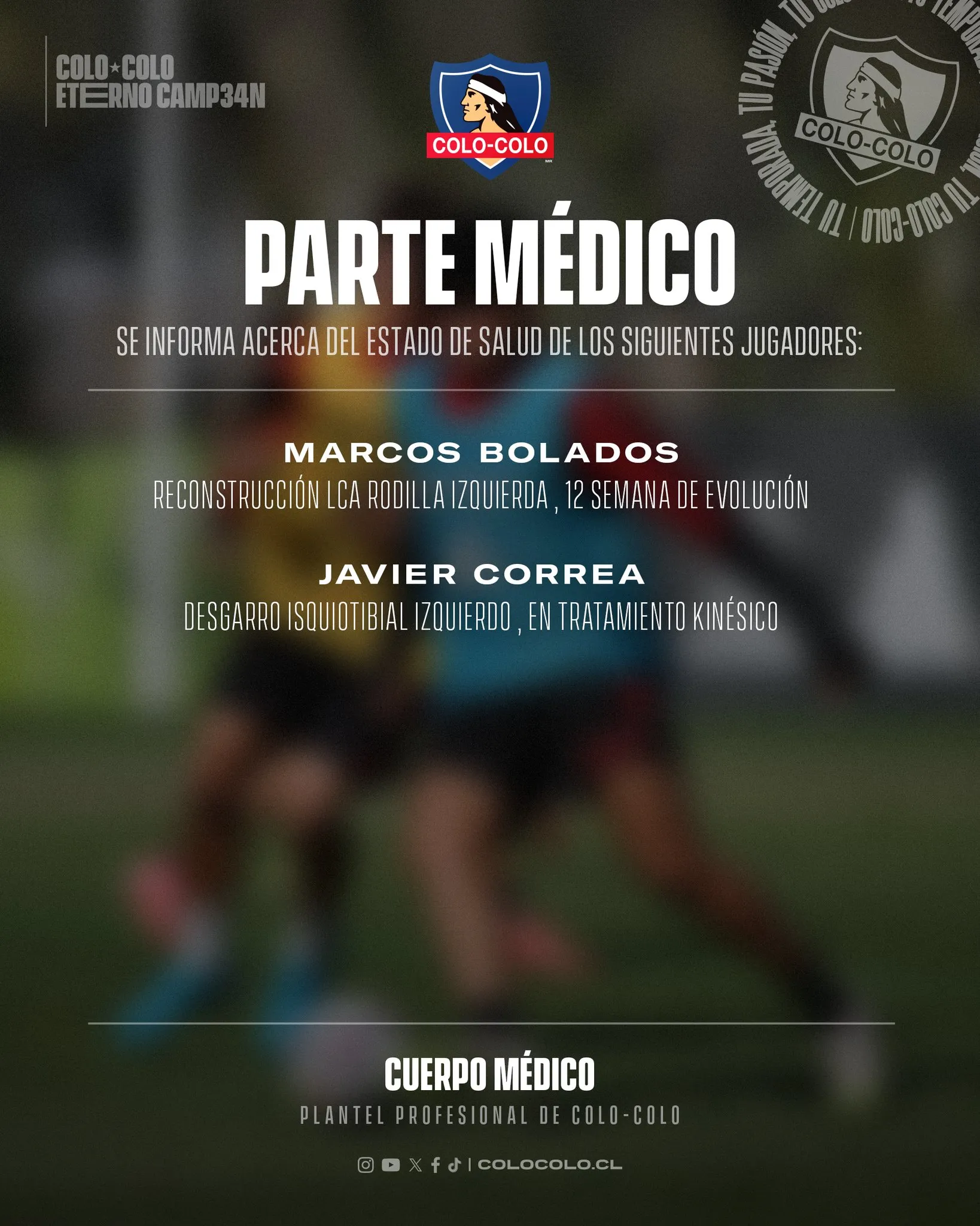 El extremo se encuentra en su semana 12 de evolución de la reconstrucción el Ligamento Cruzado Anterior de su rodilla izquierda. Por su parte, el centrodelantero argentino sigue con tratamiento kinésico, esto tras sufrir un desgarro en el isquiotibial izquierdo.