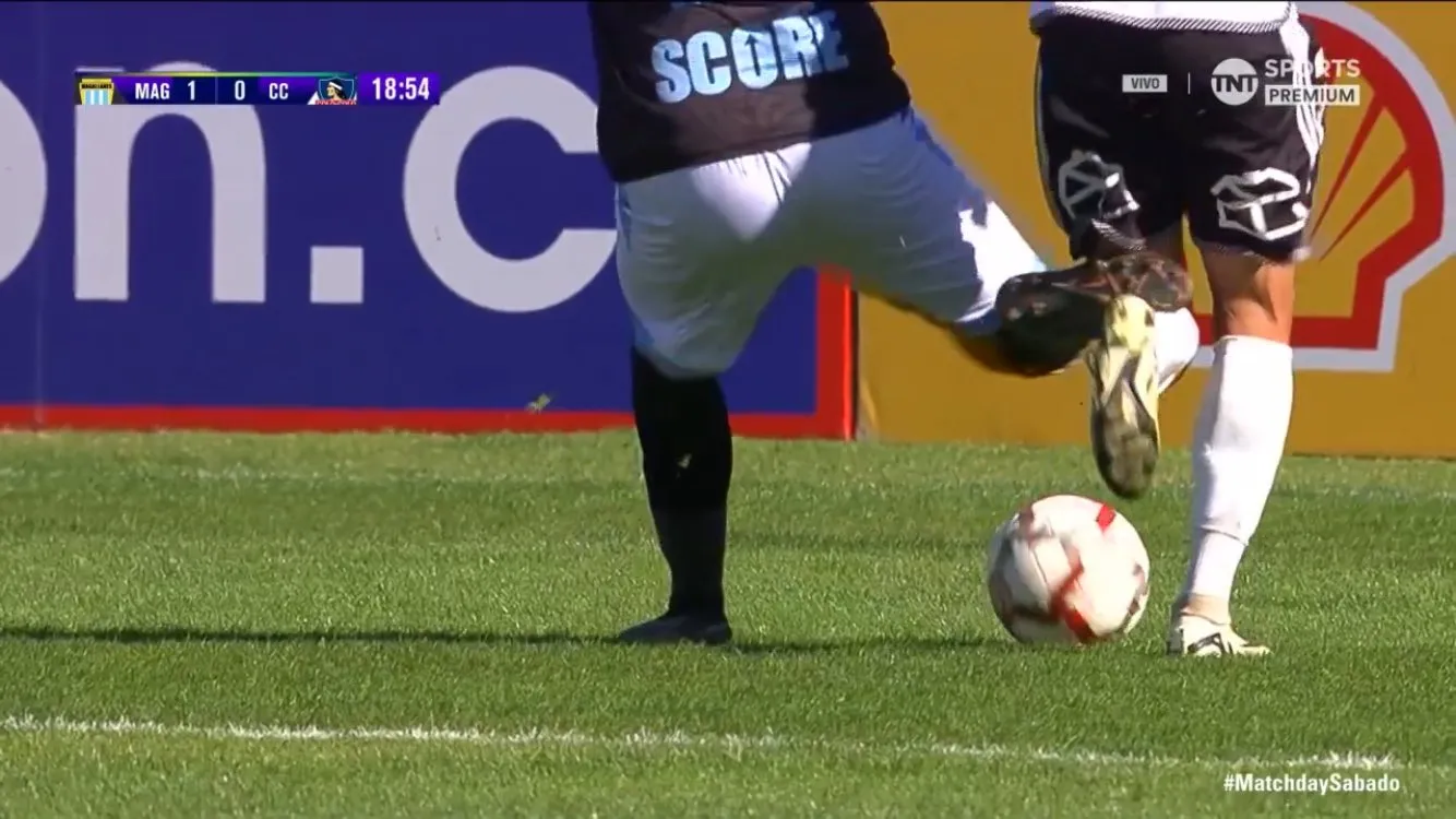 Tomás Aránguiz entró al área por el sector izquierdo, con la marca de Erick Wiemberg. El jugador de Magallanes se enganchó el mismo con el pié del lateral izquierdo albo, por lo que terminó cayendo. Gamboa compró de lleno la acción y terminó cobrando la pena máxima.