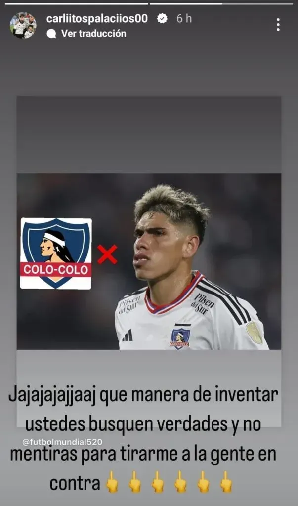 Dicha publicación llegó a los ojos del formado en la Unión Española, quien estalló y les respondió con todo, descartando una partida del Estadio Monumental y que no difundan información falsa para confundir a la hinchada.