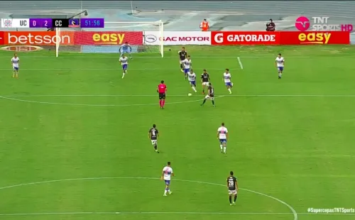 Mientras que la UC forma conDituro al arco; Fuenzalida, Ampuero, Huerta y Parot en la parte defensiva, Aued, Saavedra y Leiva en la mitad de la cancha; Tapia, Zampedri y Lezcano en delantera.