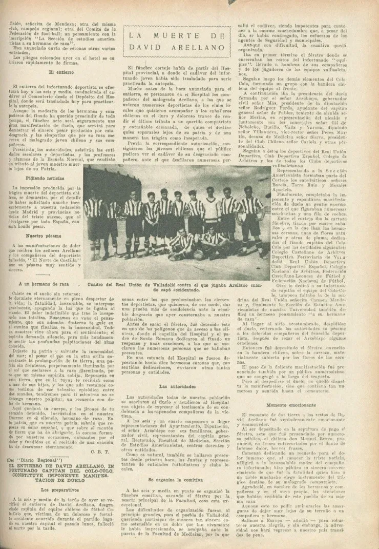 Un 3 de mayo de 1927 se produjo en Valladolid, España, un hecho que marcaría para siempre la historia del Cacique:fallecía David Alfonso Arellano Moraga, uno de los principales fundadores de Colo Colo.
