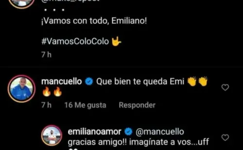 El día de ayer, el trasandino compartió una publicación en su cuenta de Instagram, en donde aparecía entrenando en los pastos del recinto de Macul y Federico Mancuello le dejó un amigable comentario: “Qué bien te queda, Emi”, haciendo alusión a la hermosa camiseta del Popular.
