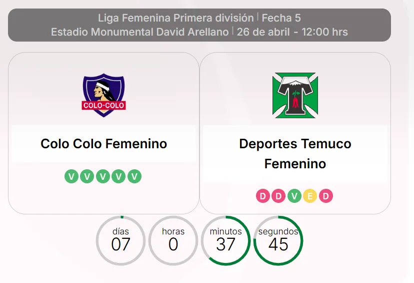 - Colo Colo vs Deportes Temuco – Domingo 26 de abril, 12:00 hrs – Estadio Monumental