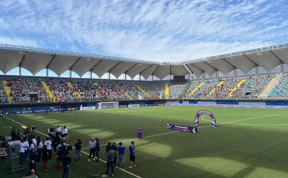 Se anuncian por los alto parlantes los nombres del cuerpo técnico y jugadoras para dar inicio a la entrega de medallas al plantel campeón de Colo Colo femenino.