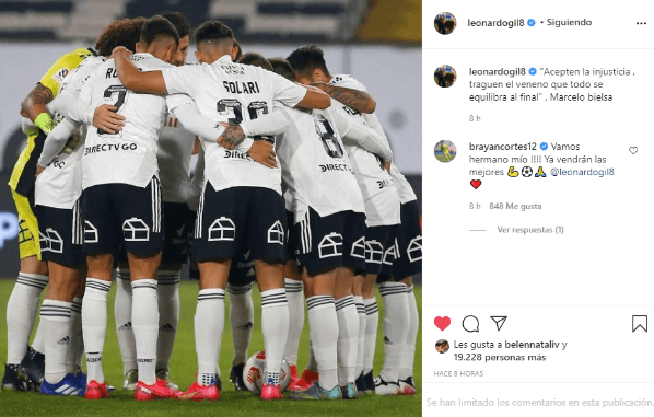 Horas más tarde, Leonardo Gil realizó una publicación en su cuenta de Instagram citando una conocida frase de Marcelo Bielsa, expresando su molestia tras el increíble penal no cobrado al Cacique.