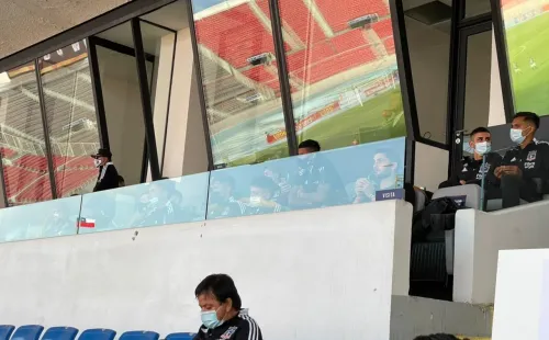 Quienes no fueron convocados por el director técnico de los Albos no quisieron perderse el encuentro y están en el palco de reducto de la comuna de Ñuñoa.