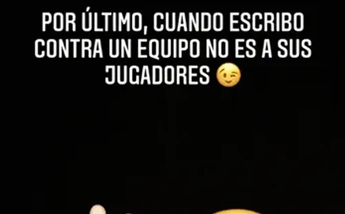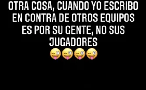 Para finalizar subió otro mensaje que también terminó siendo borrado. “Cuando escribo contra un equipo es por su gente, no sus jugadores”, publicó Castillo.