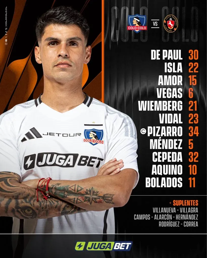 Colo Colo y Deportes Limache se enfrentan hoy lunes 27 de octubre en el cierre de la fecha 25 de la Liga de Primera 2025. El equipo colocolino recibirá a los limachinos en el Estadio Nacional, luego de que tuvieran que salir del Estadio Monumental que a mediados de la semana pasada recibió un concierto musical.