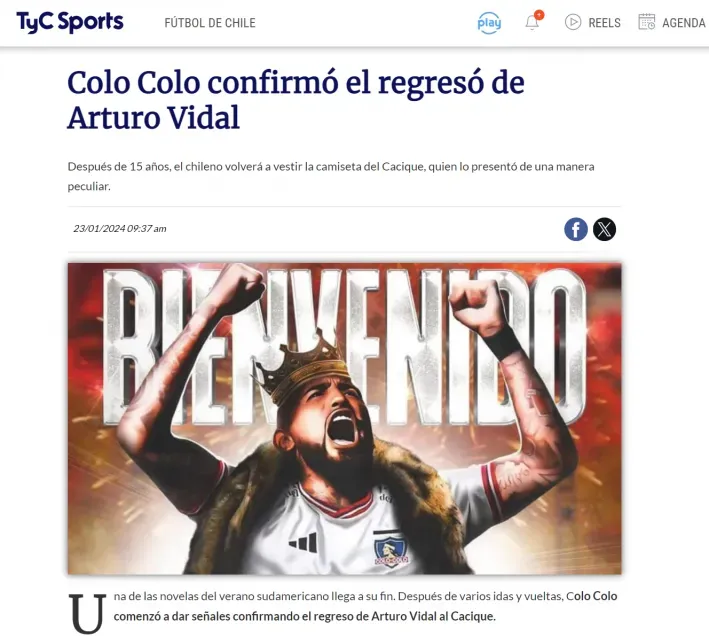 TyC, en tanto, realizó un relato de las publicaciones de Colo Colo durante la tarde de este lunes, las que fueron dando pistas que se venía la presentación. Tras ello, detallaron que “la confirmación de su regresó a Colo-Colo después de 15 años, le pone un cierre a una de las novelas más largas del último mercado de pases”.