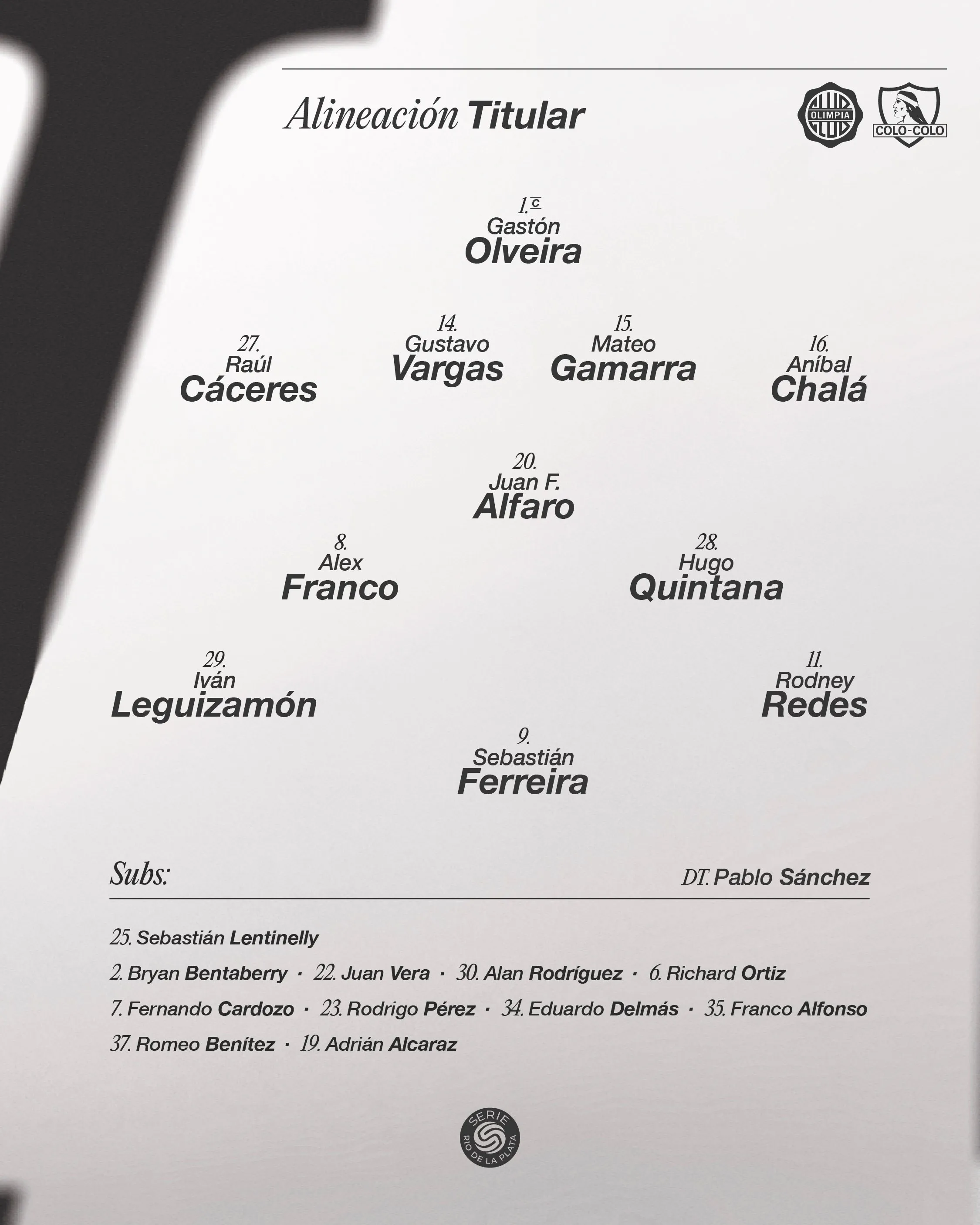 ¡Llegó el gran día! Colo Colo juega su primer partido amistoso oficial ante Olimpia de Paraguay en la Serie Río de la Plata. El Cacique de Fernando Ortiz tendrá su más importante examen ante los guaraníes en el torneo que por un año más tiene la participación de los albos.