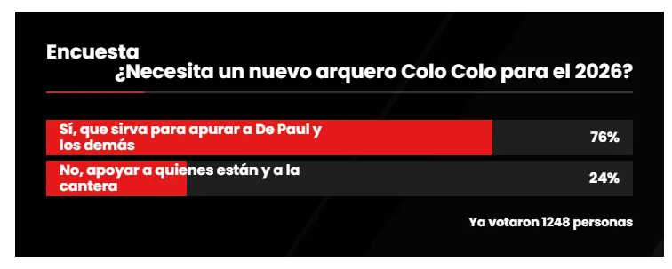 En ese sentido, DaleAlbo consultó a los hinchas respecto a la posibilidad de sumar, o no, un nuevo portero para la temporada 2026, y con una participación de más de 1.248 personas la opinión es prácticamente contundente. Más del 76% cree que es necesario sumar un nuevo portero, frente al 24% que manifiesta lo contrario.