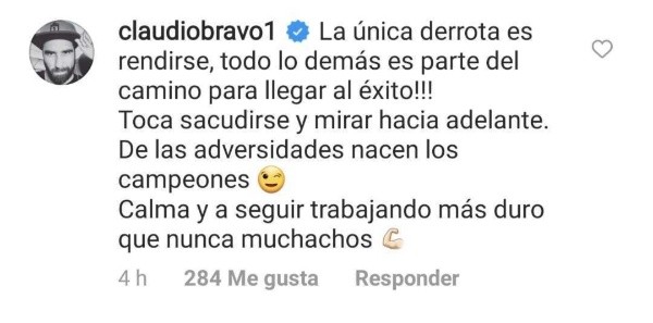 Uno que siempre está pendiente a lo que pasa en Colo Colo es Claudio Bravo. Capitán América no se perdió el compromiso y tampoco dudó en poner un alentador mensaje para los chicos en una publicación realizada en el Instagram oficial del Cacique.