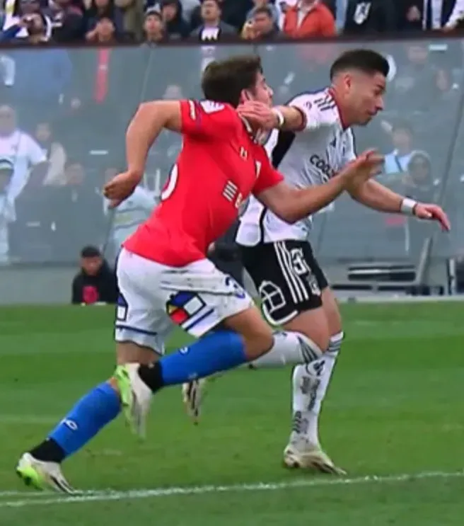 En dicha jugada, Alexander Aravena le sirvió un balonazo al espacio al delantero, quien no logró ganarle la espalda al Torta y terminó derribado luego de un manotazo que dejó con el corazón en la mano a las más de 37 mil personas que se dieron cita en la Ruca.