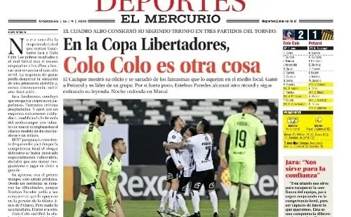 “En la Copa Libertadores, Colo Colo es otra cosa”, tituló durante esta jornada El Mercurio Deportes, agregando que “el Cacique mostró su oficio y se sacudió de los fantasmas que lo aquejan en el medio local. Ganó a Peñarol y es líder de su grupo. Por si fuera poco, Esteban Paredes otro récord y sigue estirando su leyenda. Noche redonda en Macul”.