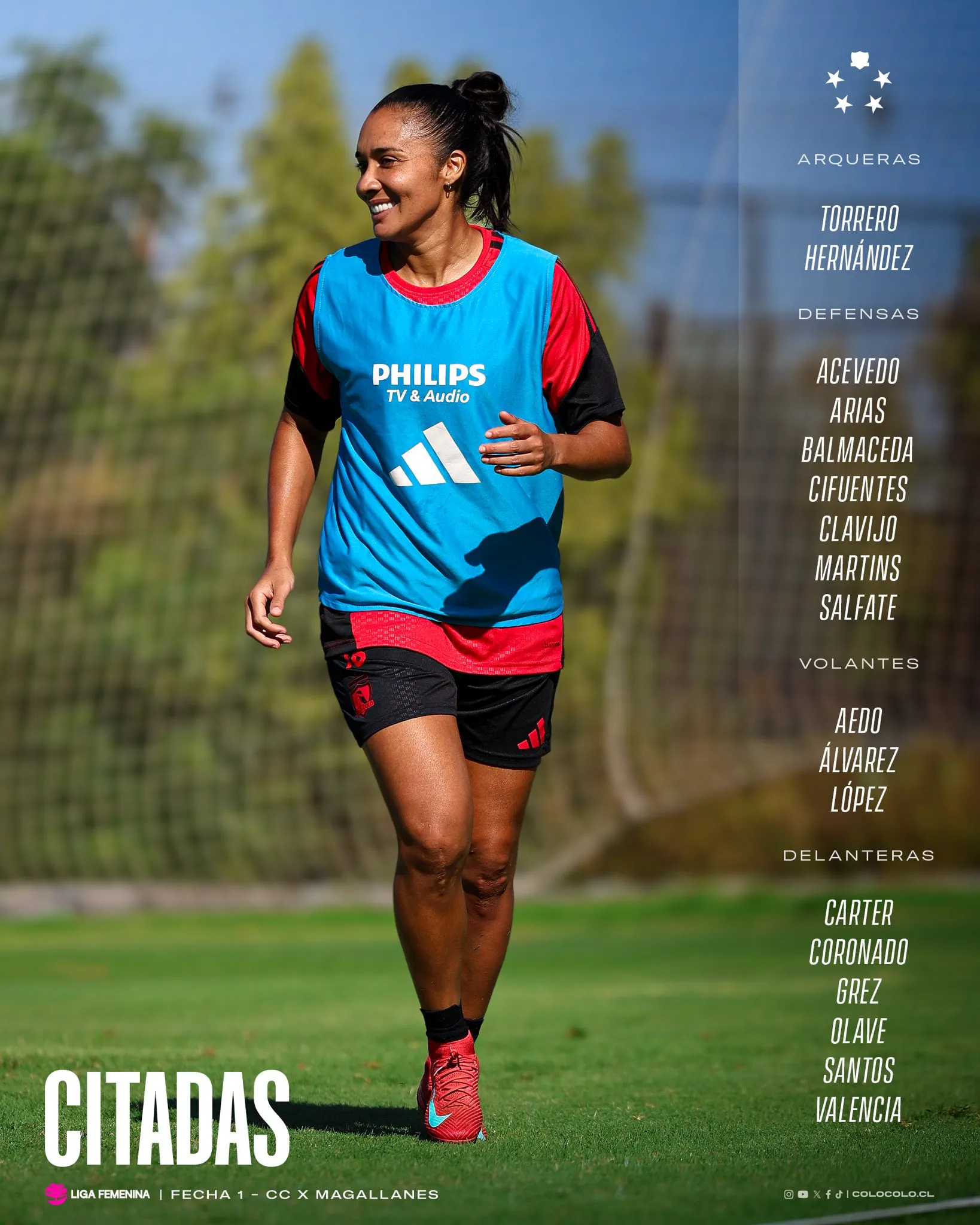 A la paraguaya también se suman Yenny Acuña, Yastin Jiménez, Rachel Ramírez, Geysel Prado y Fernanda Valdés, quienes no estarán disponibles para el debut ante las Carabeleras en el Súper Lunes del Monumental. Dentro de las convocadas se encuentran las dos refuerzos de la temporada: Claudia Salfate y Dioneide Landres e Penha Santos, más conocida como Nénem.