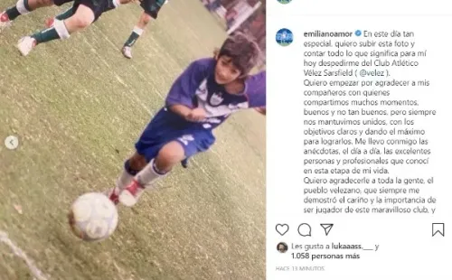“En este día tan especial, quiero subir esta foto y contar todo lo que significa para mí hoy despedirme del Club Atlético Vélez Sarsfield”, partió escribiendo.