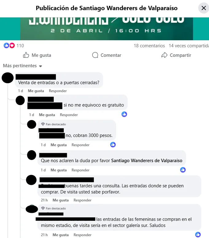 A diferencia de lo que ocurre en otros recintos, para el duelo de Colo Colo Femenino frente a Santiago Wanderers de este jueves 2 de abril la modalidad de compra es dieferente. Los hinchas deberán comprar las entradas el mismo día de partido en el acceso al recinto, y por un valor de $3.000.