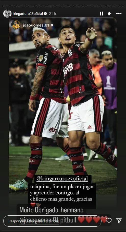 Jugadores de la talla de Joao Gomes, Rodinei, Lazaro Vinicius, Giorgian de Arrascaeta, Bruno Henrique y Fabricio Bruno, no quisieron quedarse afuera de dedicarle palabras al centrocampista de la Roja.