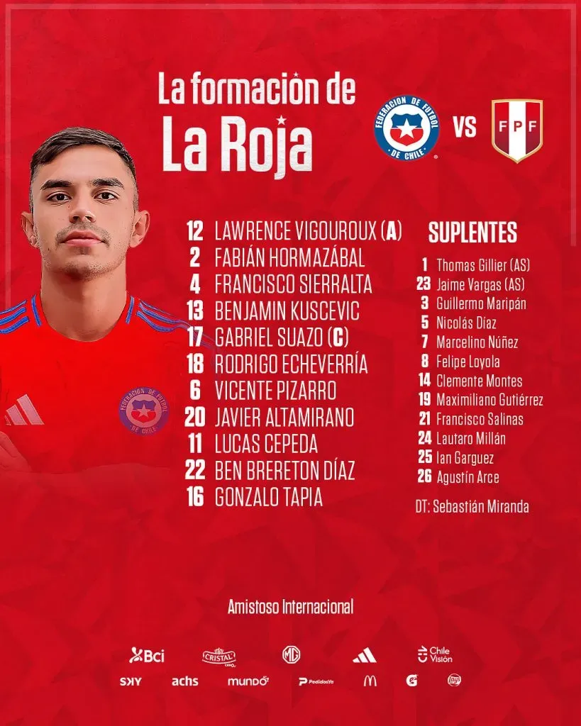 El seleccionado nacional se impuso por dos a uno a Perú pese a que no arrancó de muy buena manera. Los peruanos rompieron la paridad poco antes de culminar el primer tiempo con la anotación de César Inga (40′). Sin embargo, el equipo chileno logró sobreponerse al resultado y lo dio vuelta en la agonía con goles de Ben Brereton Díaz (63′) y Maximiliano Gutiérrez (90’+3′).