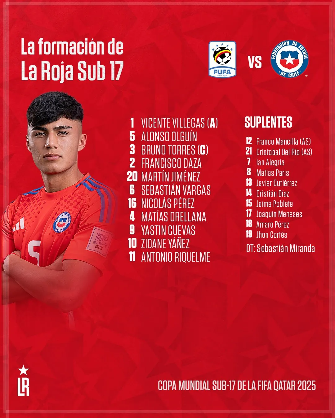 ¡VAMOS CHILE! Chile ya juega ante Uganda por la segunda fecha del Mundial Sub 17 en Qatar. ¡Mueve la pelota el cuadro africano!